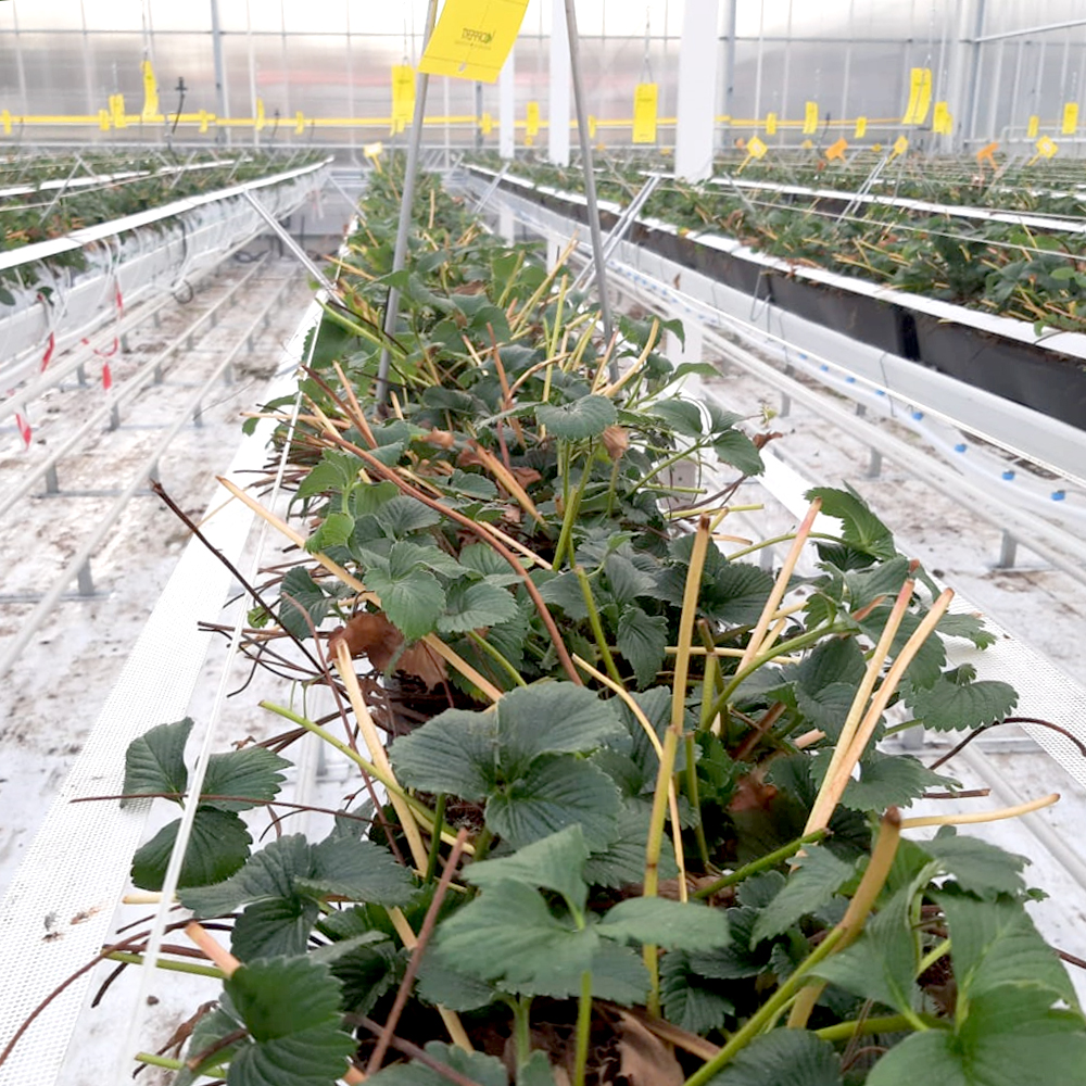 Vanwege de aanhoudende hoge gasprijzen kent de kasopstook van aardbeien dit jaar waarschijnlijk een langere doorlooptijd. Dit betekent dat een deel van de bedrijven nog druk bezig is met het verwijderen van het oude blad in de doorteelt. Deze handeling zorgt ook voor een actieve verspreiding van eventueel overblijvende Botrytis-sporen, de veroorzaker van grauwe schimmel op het blad en vruchtrot verderop in de teelt. Om de nieuwe uitgroeiende plantendelen te versterken, is ons advies per hectare een mix van 500 ml Cuprum en 100 ml Argentum te spuiten, opgelost in 300-400 liter water, gelijk na het schoonmaken van het gewas.